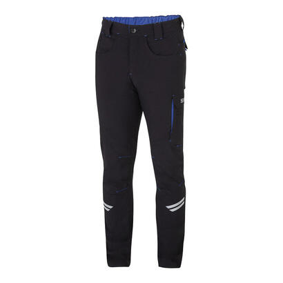 Pantalón ligero técnico negro/azul kansas t4 - xl; pantalón elástico técnico con multibolsillos, bandas reflectantes y refuerzos antiabrasión en rodillas, 90% nylon-10% spandex