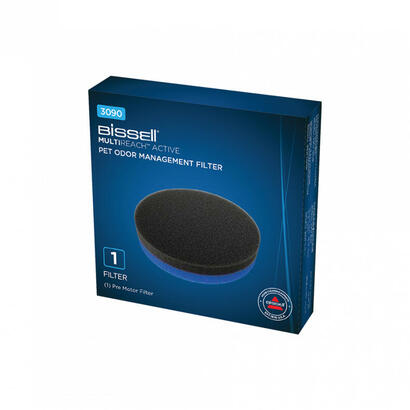 Bissell 3090. Adecuado para tipo aspirador: Aspiradora escoba, Tipo de producto: Prefiltro, Color del producto: Negro, Azul. Ancho: 100 mm, Profundidad: 100 mm, Altura: 20 mm. Cantidad por paquete: 1 pieza(s)