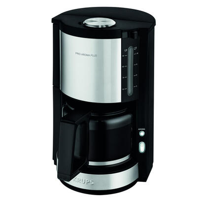 Krups KM3210. Tipo de producto: Cafetera de filtro, Capacidad de reservorio de agua: 1,25 L, Depósito para café preparado: Jarra, Capacidad en tazas: 10 tazas. Potencia: 1100 W. Color del producto: Negro, Acero inoxidable, Transparente