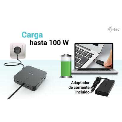 i-tec USB-C HDMI Dual DP Docking Station with Power Delivery 100 W + Universal Charger 100 W. Tecnología de conectividad: Alámbrico, Interfaz de host: USB 3.2 Gen 1 (3.1 Gen 1) Type-C, Entrega de energía USB (USB Power Delivery) de hasta: 100 W. Ethernet LAN, velocidad de transferencia de datos: 10,100,1000 Mbit/s. Color del producto: Negro, Velocidad de transferencia de datos: 10 Gbit/s, Máxima velocidad de actualización: 144 Hz. Alimentación: Corriente alterna, Voltaje de entrada AC: 100-240 V, Frecuencia de entrada AC: 50-60 Hz. Sistemas operativos móviles soportados: Android, iOS, Otros sistemas operativos soportados: ChromeOS