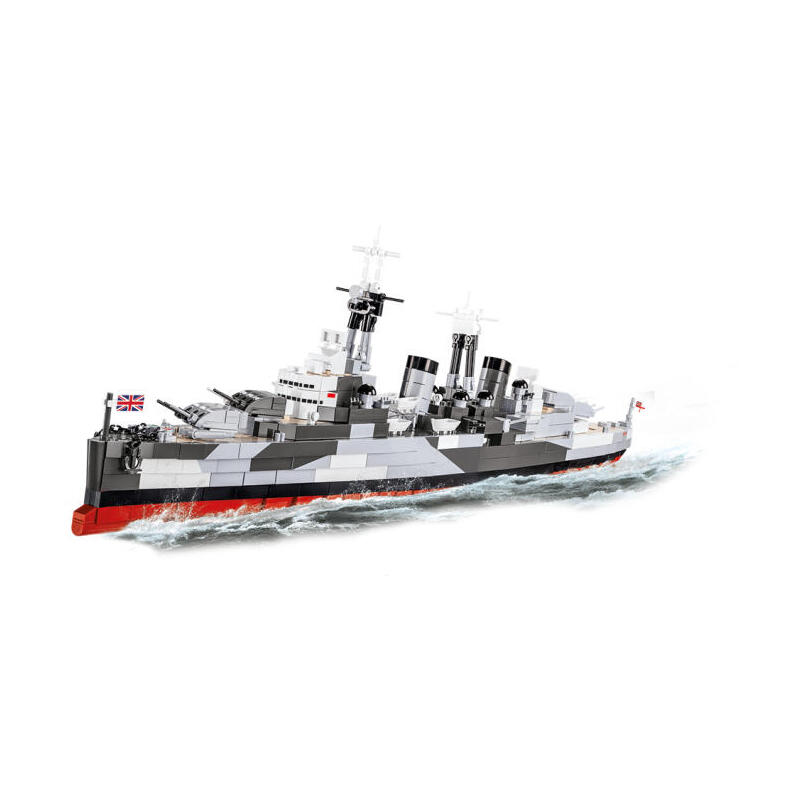 Este modelo COBI del crucero ligero británico HMS Belfast fue diseñado en escala 1:300. Consta de 1517 bloques de construcción y, por lo tanto, ofrece muchas horas de diversión de construcción. El modelo reproduce fielmente las proporciones del barco histórico, incluido el camuflaje original y característico. El modelo tiene numerosas partes móviles, como cañones de cubierta, torretas de artillería giratorias, timones y hélices. Numerosos bloques se imprimen en forma de alta calidad y resistente a la abrasión. El conjunto incluye un soporte edificable con una piedra en la que está impreso el nombre del barco.