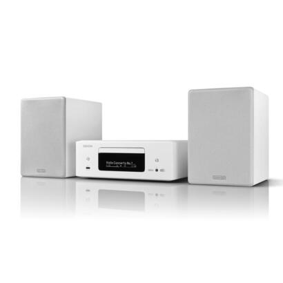 Denon CEOL N12DAB. Tipo: Minicadena de música para uso doméstico, Color del producto: Blanco, Número de discos ópticos: 1 discos. Potencia estimada RMS: 65 W, Tipo de altavoces: De 2 vías. Bandas de radio soportadas: DAB, DAB+, FM, Banda FM: 87,5 - 108 MHz, Servicios de radio por internet soportados: Amazon Music, Deezer, Spotify, Tidal. Auriculares: 3,5 mm, Alimentación: Corriente alterna. Formatos de audio soportados: MP3, WMA, Tipos de discos soportados: CD, CD-R, CD-RW