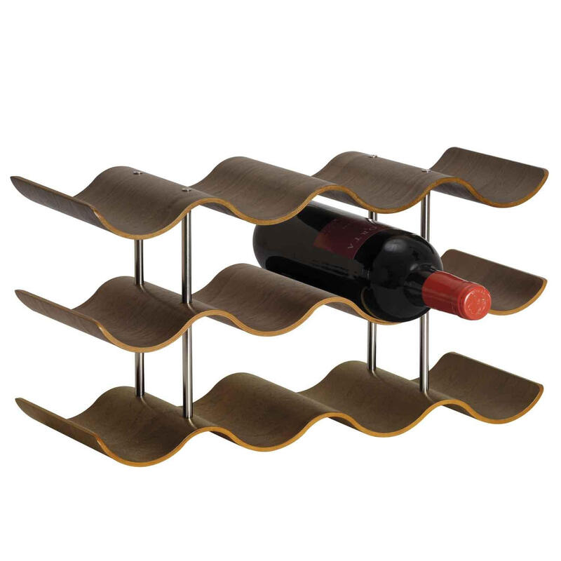 Botellero de diseño en nogal y metal con capacidad para 12 botellas, 4 por estanteria medida 42 x 16 x 23 cm