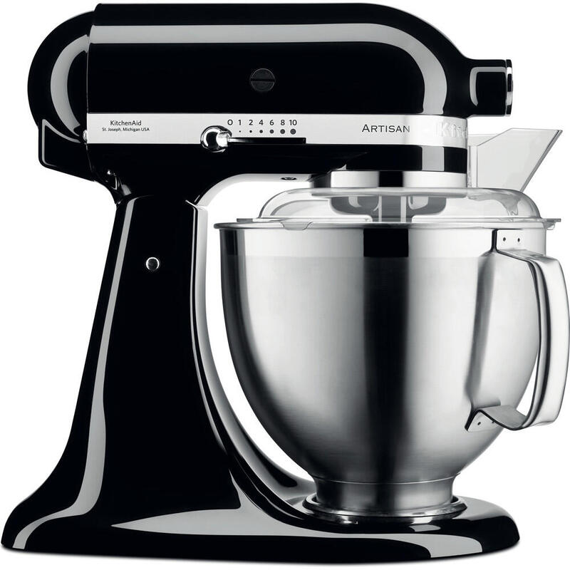KitchenAid Artisan 5KSM185PS. Capacidad del tazón: 4,8 L, Color del producto: Negro, Tipo de control: palanca. Material del tazón: Acero inoxidable. Potencia: 300 W, Voltaje de entrada AC: 220 - 240 V, Frecuencia de entrada AC: 50 - 60 Hz. Ancho: 240 mm, Profundidad: 370 mm, Altura: 360 mm. Ancho del paquete: 406 mm, Profundidad del paquete: 273 mm, Altura del paquete: 413 mm