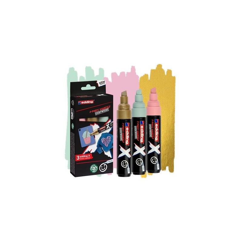 EDDING X 6900 PASTEL PACK DE 3 ROTULADORES MULTISUPERFICIE PERMANENTES DE TINTA OPACA - PUNTA BISELADA CON TRAZO 2-10MM