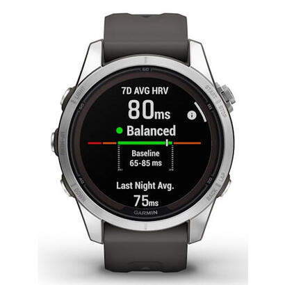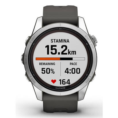 Garmin fenix 7S Pro. Diagonal de la pantalla: 3,05 cm (1.2"), Tecnología de visualización: MIP, Resolución de la pantalla: 240 x 240 Pixeles, Pantalla táctil. Memoria flash: 32 GB. Wifi. GPS (satélite). Peso: 63 g. Material de la banda: Silicona, Color de banda: Grafito