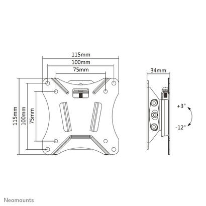 Newstar Soporte de pared para TV. Capacidad máxima de peso: 25 kg, Tamaño mínimo de pantalla: 25,4 cm (10"), Tamaño máximo de pantalla: 76,2 cm (30"), Compatibilidad con interfaz de montaje (min): 75 x 75 mm, Compatibilidad con interfaz de montaje (max): 100 x 100 mm. Ángulo de inclinación: 0 - 15°, Distancia a la pared (max): 3,4 cm. Color del producto:...